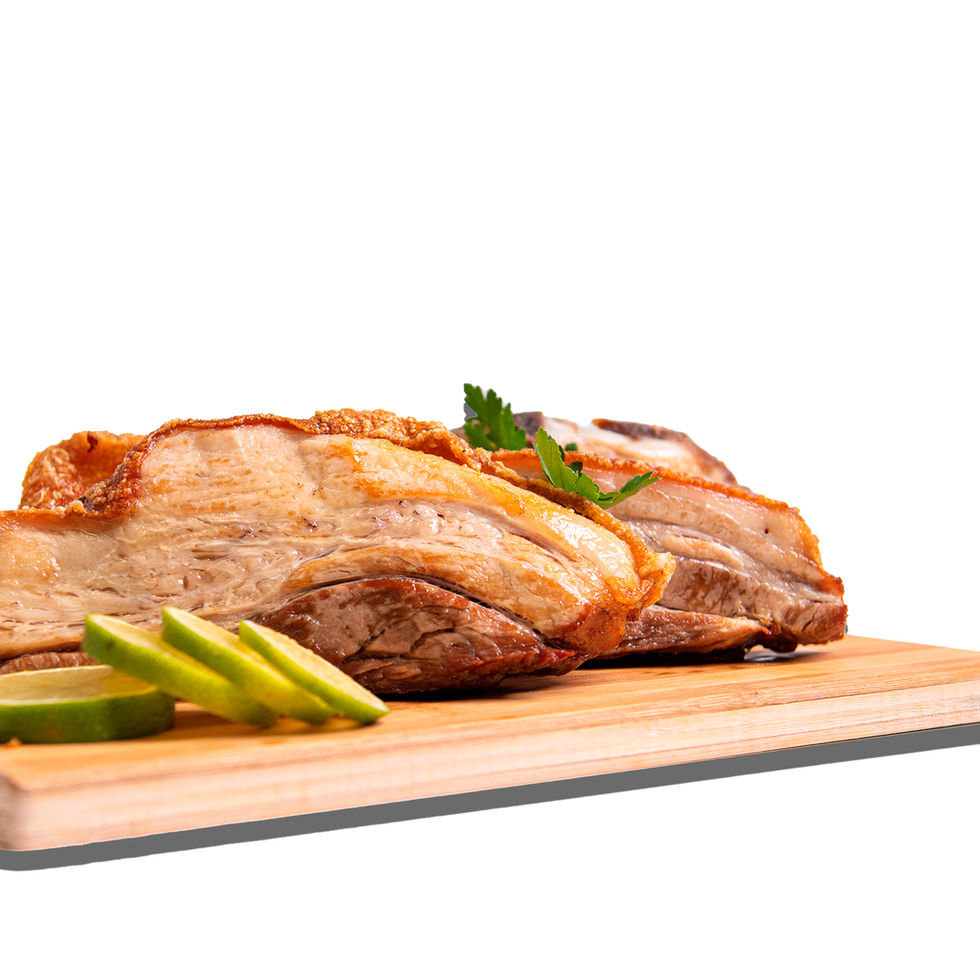 Crispy pork belly with perfectly seasoned, golden-brown skin. A savoury Latin classic, ideal as a snack, side dish, or main — full of flavour and crunch.
